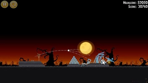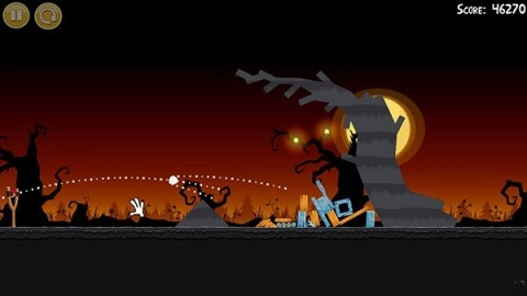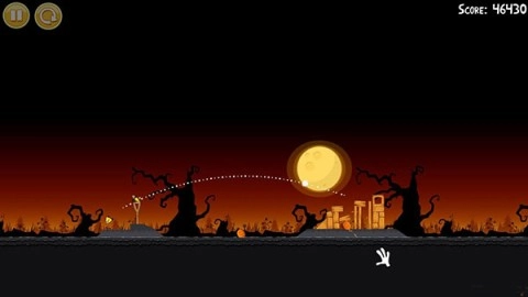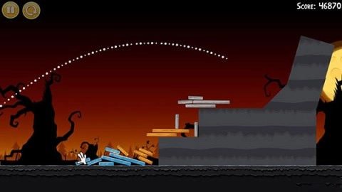 第一只鸟按图里的轨迹飞过去,精准击中左下角,把南瓜头解决掉;紧接着用同样的斜插角度放出第二只鸟,给对方来个狠狠的打击!想拿三星真的得看运气,只能一次次尝试,虽然过程有点折腾,但也挺有意思的!