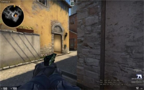 和站在墙角比起来,这个位置要好一些。要是连接位有队友能跟你形成交叉火力,那可以考虑选这个站位;但如果只有你自己的话,还是退回去防守比较好。