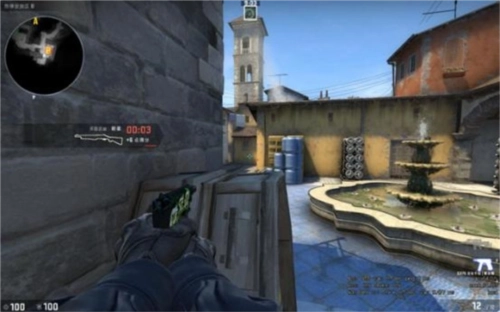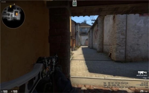 当T在进攻B点执行断后任务时,选择站在此处而非紧贴墙壁更为有利,这是由于地图更新后,香蕉道入口的两侧区域都可供人员占位。在这种情况下,若对手具备基本的战术意识,通常会先观察右侧(即图中准星所指的位置),随后再对左侧区域进行排查。而你恰好可以利用这一观察顺序,提前半个身位的时间察觉对手的行动方向。