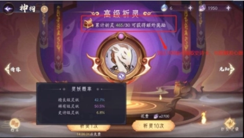 1.30累计30次抽取必定获得史诗品质灵妖,累计90次抽取必定获得心愿单中的灵妖(此外,100抽赠送的随机灵妖也具备触发心愿单的效果)