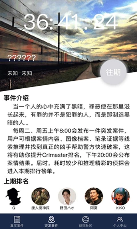 《探案大师》是一款极具挑战性的解谜游戏,它考验着玩家的观察力与案件的能力。你是否渴望成为全球最顶尖的侦探大师?那就加入我们,开启各类案件的挑战之旅吧。运用你的智慧,揭开每个案件背后的真相。只要你能洞悉所有真相,定能成为最出色的侦探大师。