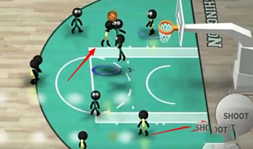 玩家要操控火柴人在场地上进行移动,以此来完成不同的篮球动作。
