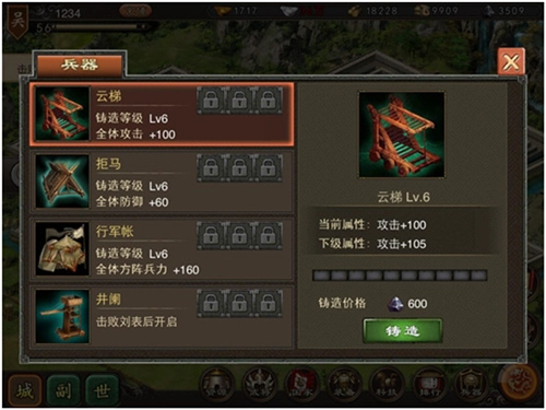 ●兵器生产后产生效果,可以消耗镔铁铸造兵器,增强其效果。