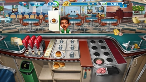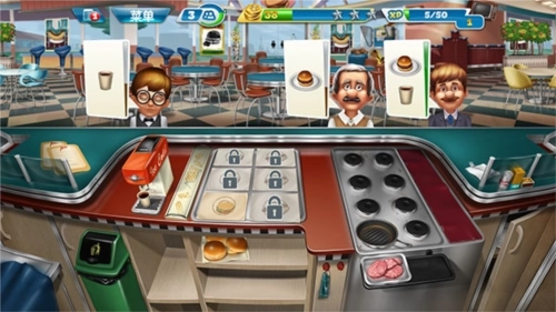 随着玩家持续解锁关卡,能获取更多新食材与道具,同时也会愈发手忙脚乱。在此小编分享一个小技巧:不少客人会选择点套餐,而套餐里只要上了其中一份食物,就能延长顾客的等待时间,所以可以提前准备一些饮品,用来增加顾客的等待时间。