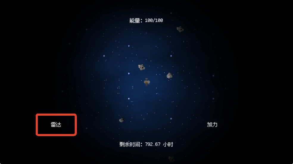 发动引擎、开采矿石以及使用雷达这些操作,都需要消耗界面上方的能量值,所以要留意别让能量值降到0。