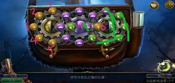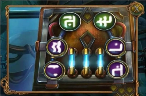 将能量电池安装到舱室右侧的控制柜上,接着通过下方四个紫色图形的组合来匹配上方两个绿色符号,待指示灯亮起后,即可开启控制柜门。