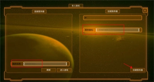2、先输入你的名字创建服务器,接着挑选服务器名称,这样你的小伙伴只要输入对应的IP地址,就能和你一起联机了。