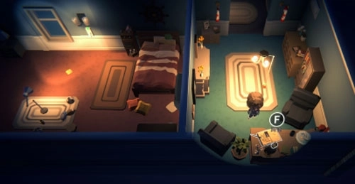 玩家需要和场景里形形色色的物品互动,开辟出一条不被黑暗笼罩的安全路径,直至安然入睡。在此过程中,场景中的碎片化叙事还能拼凑出这个家庭隐藏的秘密。