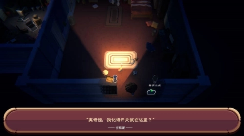 1、进入游戏后,先通过缩放镜头来全面查看室内环境,把所有光源的位置都确认清楚。这一步可以帮你规划好关灯的路线,防止漏掉重要的光源。
