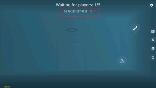 开始加载游戏后,游戏界面最上方显示的那串代码就是房间号,你可以点击箭头指向的按钮复制它,然后分享给朋友。