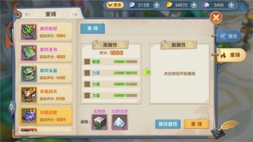5、第三步为装备重铸,该操作仅适用于红色品质装备与橙色品质装备。进行重铸时,需借助对应的专属材料对装备原有属性进行重新生成,只有洗练出契合自身职业需求的属性,才能称之为真正适配的装备!