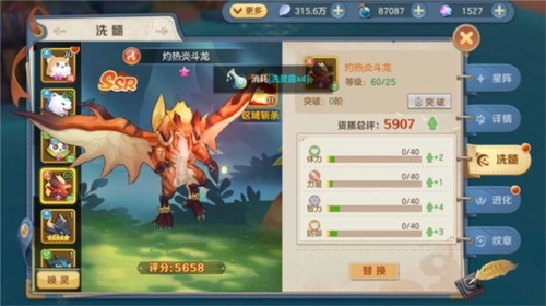 4、给宠物洗髓得用到道具“洗灵露”,每次洗髓时资质条都会显示出资质提升或者减少的进度。这个游戏特别良心的一点是,洗出来的新资质由玩家自己决定要不要用来替换覆盖原来的资质。