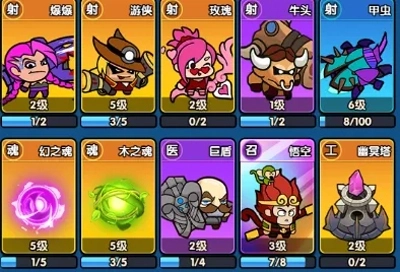 爆爆、游侠、玫瑰、牛头、甲虫、巨盾、悟空、幽冥塔、幻之魂、木之魂