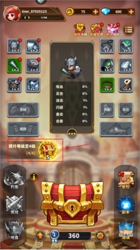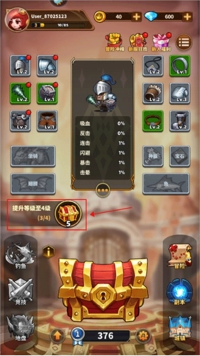 5、获取的奖励能够用于提升宝箱等级,宝箱等级越高,开出珍稀装备的概率就越大