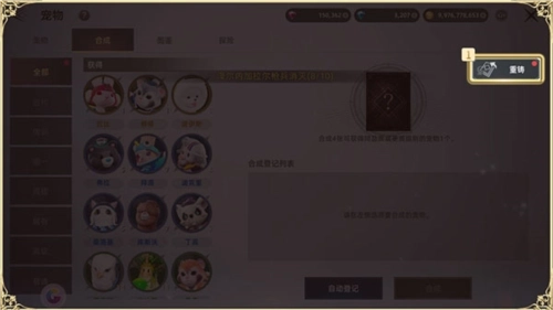 当宠物合成产出英雄级或更高品质的宠物时,可选择对该宠物进行重铸操作。