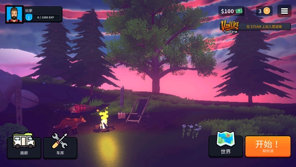 启动房车生活模拟器游戏,然后点击界面右侧的“start”按钮来开始游戏。