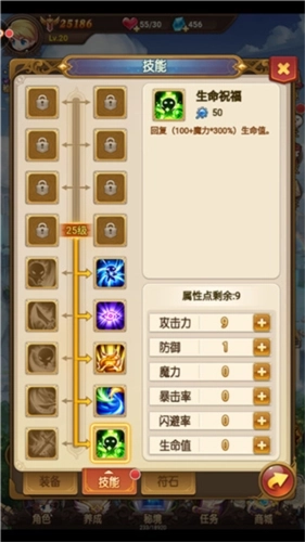 测试期间会发放大量钻石,推荐玩家先用钻石进行一次水晶球十连抽,这样能获取一批优质装备,大幅提升前期打怪效率。关于技能系统,技能树左右两侧各有九个技能分支,前期优先点出“生命祝福”和“魔力灌注”——前者可回复生命值,后者能补充魔力值,二者搭配堪称“永动机组合”;此外,左侧技能偏向攻击属性,右侧技能侧重防御效果,建议根据自身需求和技能特性灵活搭配。属性点分配方面,建议攻击与魔力属性均衡加点,同时给防御和生命各分配2-3点,适当提升防御能力,避免被BOSS秒杀。