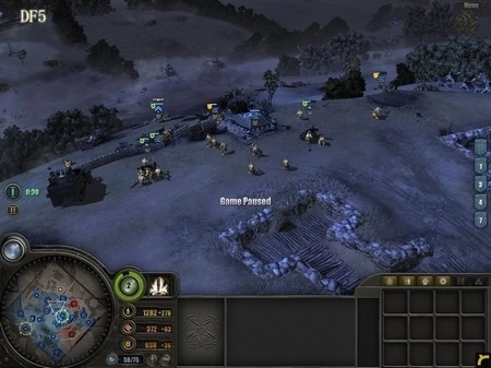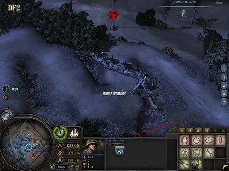 为什么要使用半履带车呢?它的用途有两个:一是歼灭敌方步兵,二是补充己方兵力(估计很多人不清楚靠近它时按“R”键有什么作用)。狙击手要驻守在DF5区域,DF5是防御的核心要点,这里将成为阻挡德军进攻的关键力量。所有重机枪都部署在这里,把刚才由RM部队缴获的两门57毫米火炮安置到此处,同时将解救出来的游骑兵部队和完成任务返回的RM部队全部调配到这里驻守。 大约五分钟后,德军会发起突袭,但他们的主要兵力会集中在西侧方向,我们暂时不用理会这股敌人,后山的工兵继续建造防御工事即可。很快经验值就会积累到1点,建议优先升级步兵防御工事,这样步兵单位就能参与建造防御设施了。随后调动DF5防区中达到3级的RM部队,让他们顶着零星的炮火(这就是选择用RM而不用工兵的原因),在DF5的盘山小道上修建防御工事,彻底切断德军沿山路向上进攻的通道。
