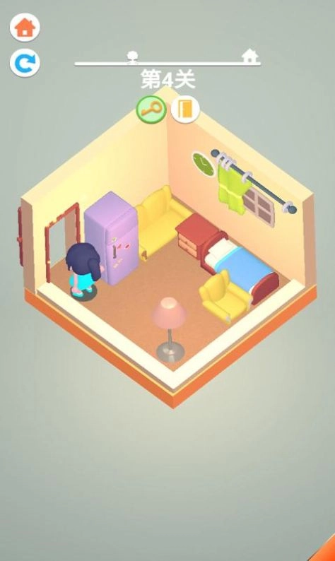3、我们的任务是在游戏里挪动家具,找到能打开门的钥匙,好让我们赶在妈妈回来前顺利溜出去。