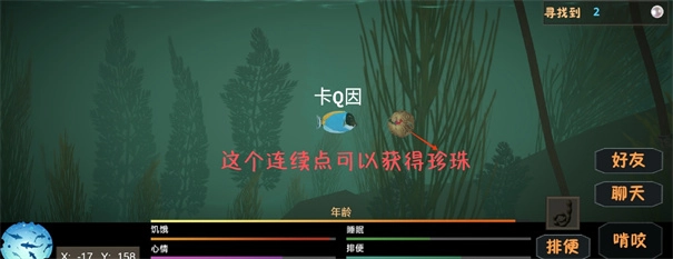 大鱼的血量相当厚实,单人挑战得耗费不少时间,不少小鱼都不清楚该怎么对付它。其实方法很简单,大鱼身上会有泛绿光的部位,当你靠近时啃咬键会变成红色,这时就能发起啃咬攻击了。不同种类的鱼攻击力都一样,所以需要小鱼们组队协作去啃咬大鱼,击败它之后会掉落珍珠和鱼肉。不过这里我因为急着去抢珍珠,没能及时截图,实在抱歉~(另外补充一下,玩家之间是无法互相造成伤害的)