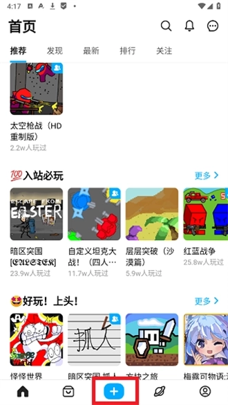 1、点击本站提供的游戏链接,在游戏首页能看到一个“+”号图标,点击该图标即可进入下一个页面。