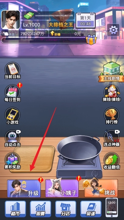1、进入游戏点击升级角色。