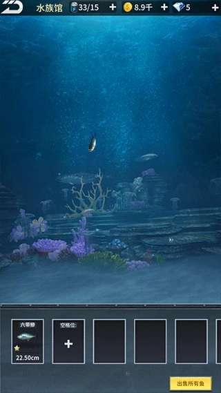 6、你可以直接卖掉换取金币,也可以选择“放长线钓大鱼”,先把鱼放进水族馆养一阵子再出售。鱼放进水族箱后会持续生长,到时候卖出能拿到更多金币呢~