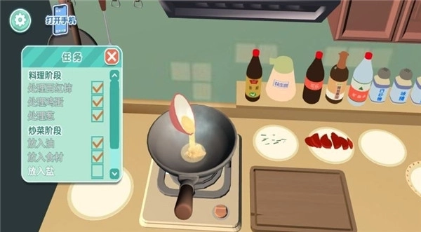 3、通过点击操作来模拟煎、炒、煮、炸等各类烹饪动作,同时也能够对火候大小和烹饪时长进行调控。
