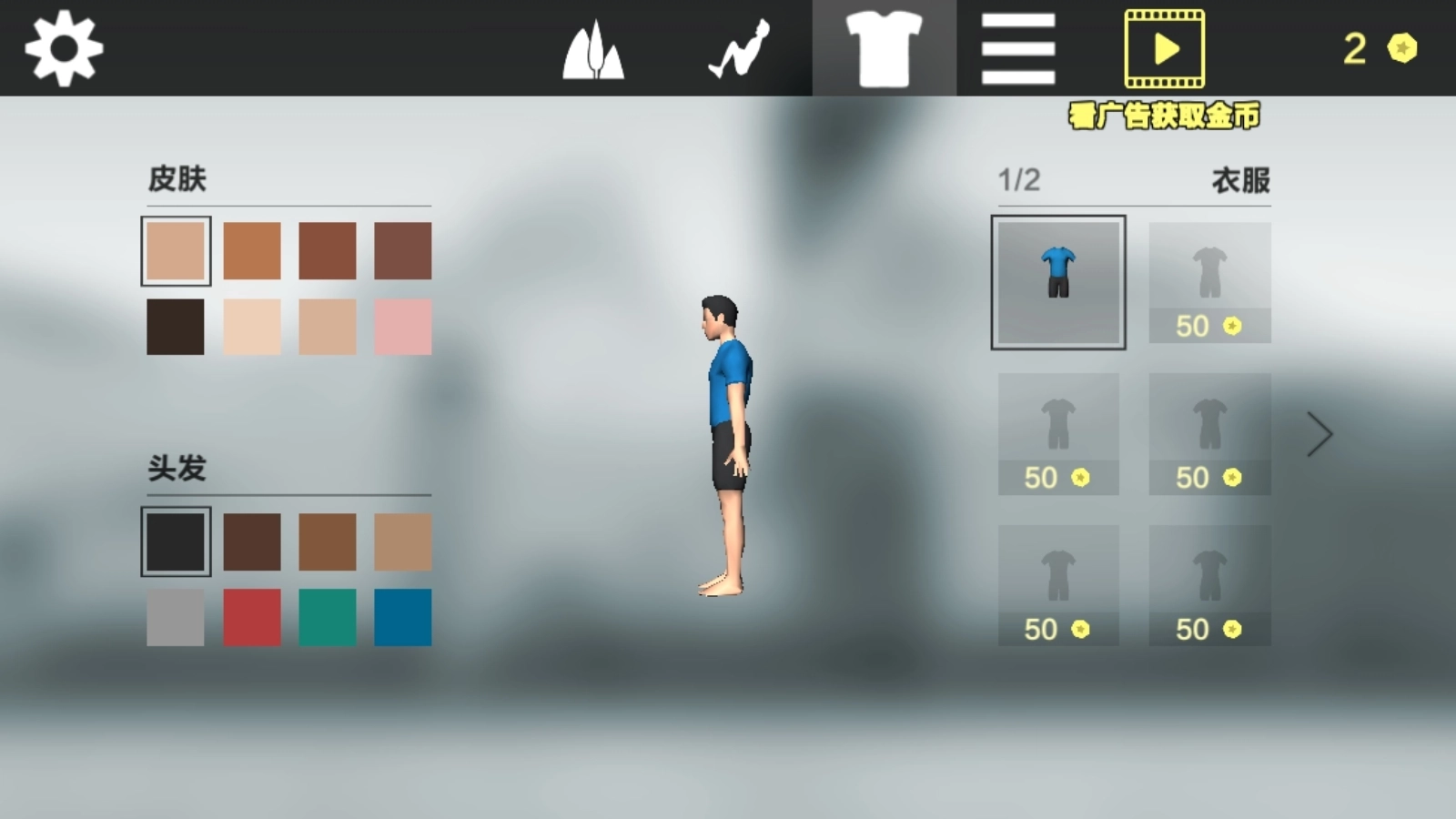 3、在主页面的皮肤商城里,你能够用金币购买服装、设置皮肤等。