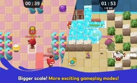 还有一点要注意:如果没有速度优势就别到处乱跑,在开阔的大路上乱闯,最先出局的很可能就是你。选好上下左右任意一个区域,就在这个范围内活动。不过要记住,在固定区域里也最容易被对手堵住,所以得时刻留意对方的动向,一旦察觉情况不对,就赶紧往区域外转移。转移的时候千万别留下泡泡,否则自己就没了退路。另外也别盲目往外冲,要根据实际情况灵活应对。