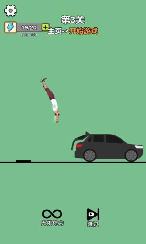 1、轻松好上手:玩家只需轻点屏幕,就能操控角色完成跳跃与空翻动作,操作简单不复杂,很适合休闲玩家轻松体验。