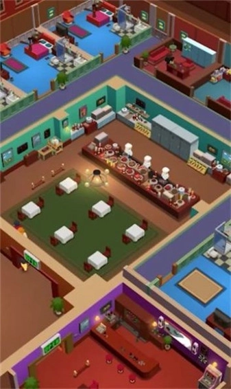 1、涵盖招聘员工、招揽顾客、设计酒店布局、优化酒店服务等丰富多样的玩法内容体验。