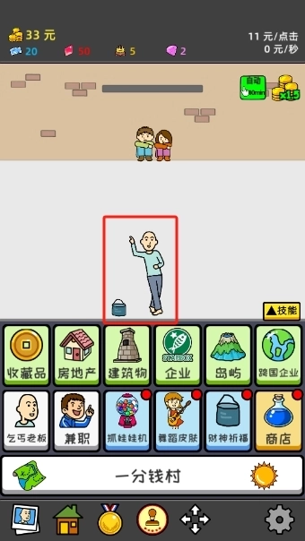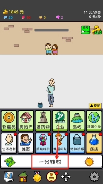 3、在一分钱村,玩家能够对装备进行升级、雇佣精英人才、尽情购物,还可以为乞丐角色搭配上炫酷的装扮。