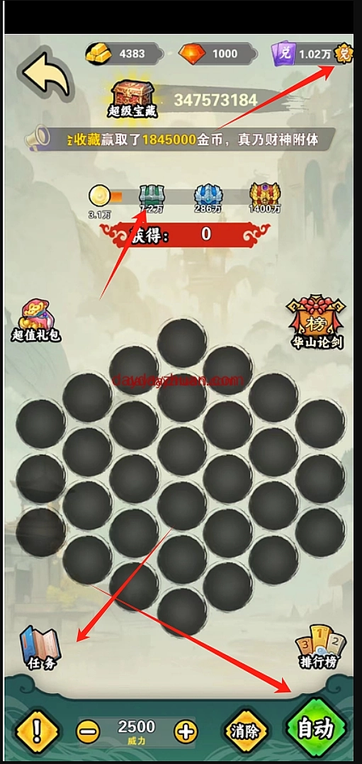 1.特色丹炉消除玩法:创新设计的丹炉盘面,通过匹配药材图标,触发连锁消除效果,以此释放出药力精华。