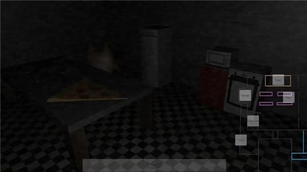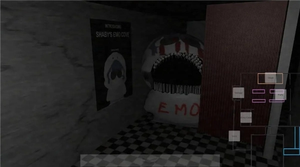 《沙比的五夜惊魂》是一款恐怖风格的密室解谜逃脱游戏,其场景被设定在一家光线昏暗的披萨店内。店内多数区域仅有微弱的灯光,或是灯光不停闪烁,这种昏暗的环境让玩家难以清晰观察到周围的整体情况,从而加深了对未知事物的恐惧感。