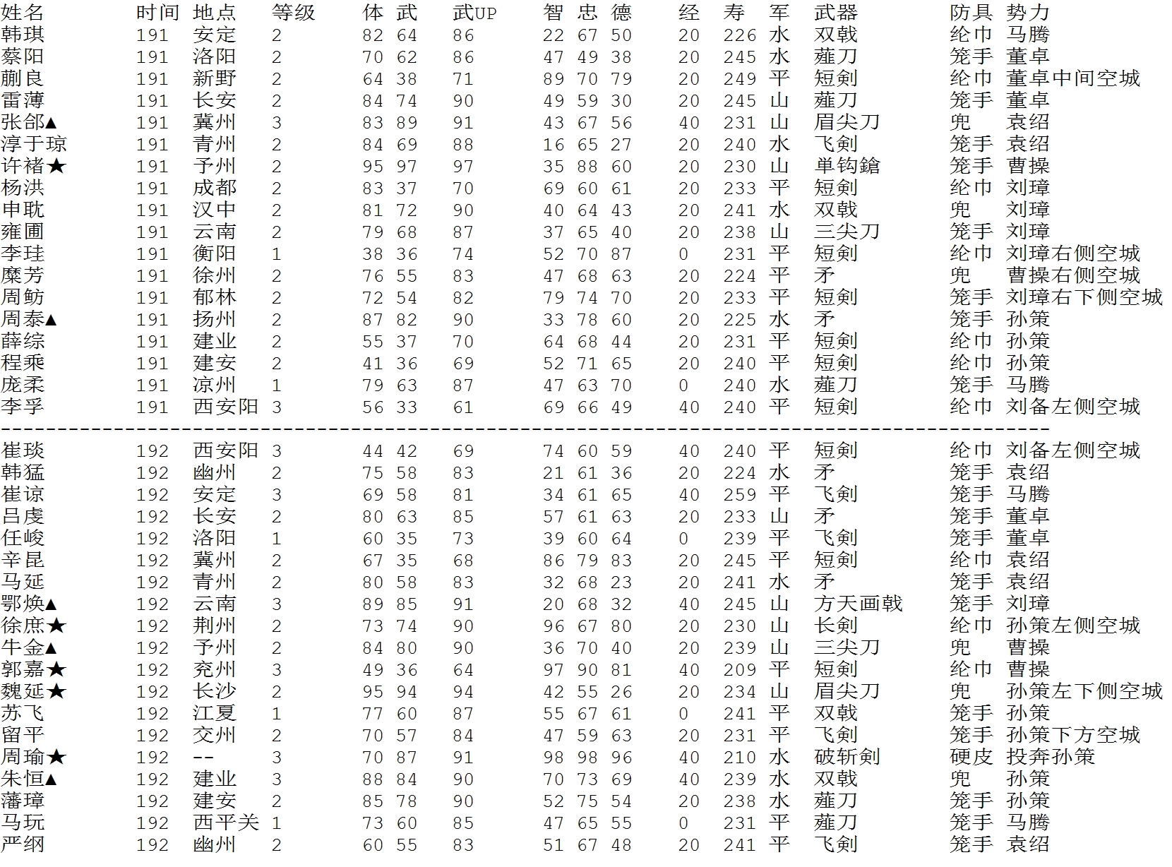 191年-192年出现的人物列表