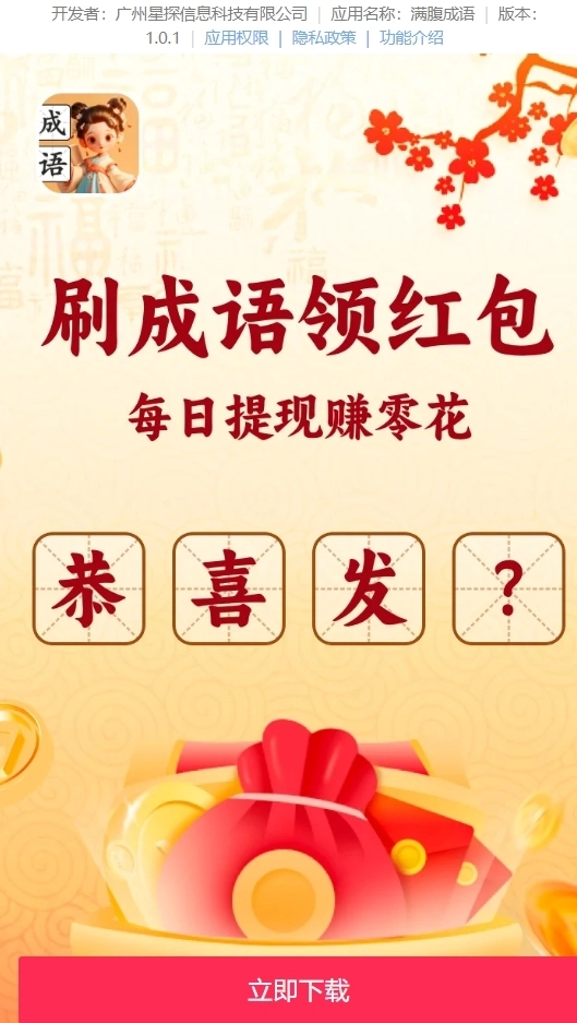 《满腹成语赚钱版》是近期全新推出的一款成语答题闯关类手机赚钱游戏,由广州星探信息科技有限公司精心研发。游戏内收录了海量丰富的成语题库,更有别具一格的趣味闯关玩法等待玩家解锁,同时还准备了丰厚诱人的福利红包,奖励力度十足,绝对值得一试!