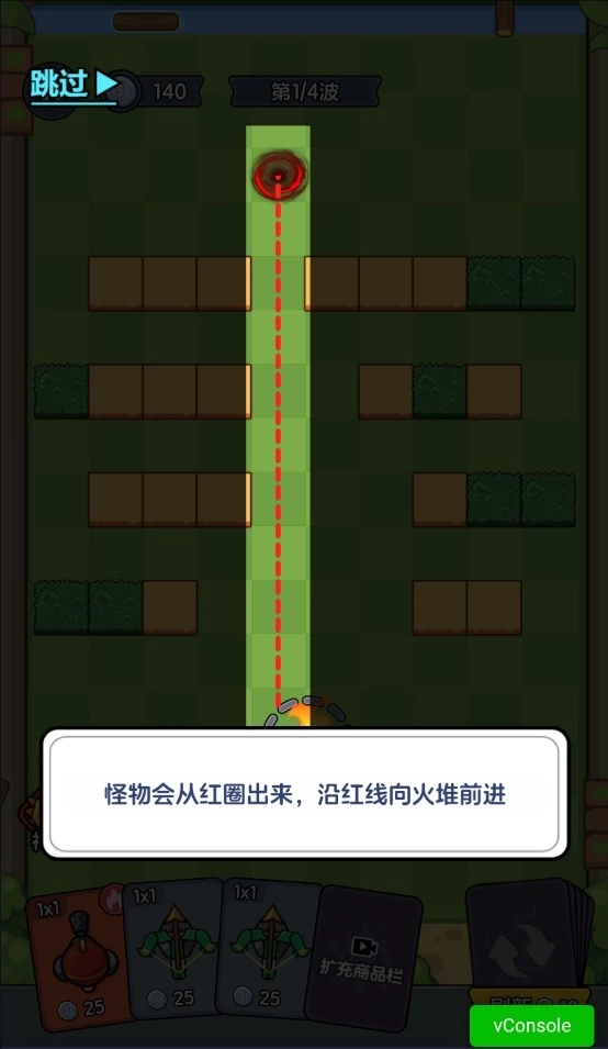 1、怪物会从红圈出来,沿红线向火堆前进。