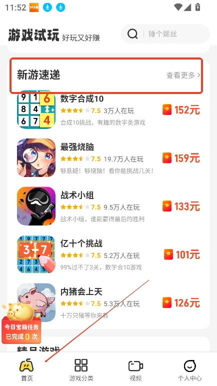 1、进入首页,可以查看新游速递,点击查看更多,可以发现更多游戏内容