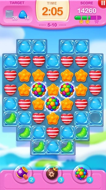 1、消除糖果的过程中,会出现奇妙的爆破特效与欢快的音效,让游戏的趣味性和沉浸感得到了提升。