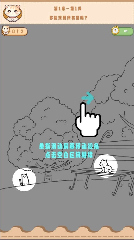 1、游戏后,玩家需要点击屏幕寻找藏起来的猫猫。