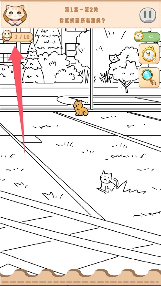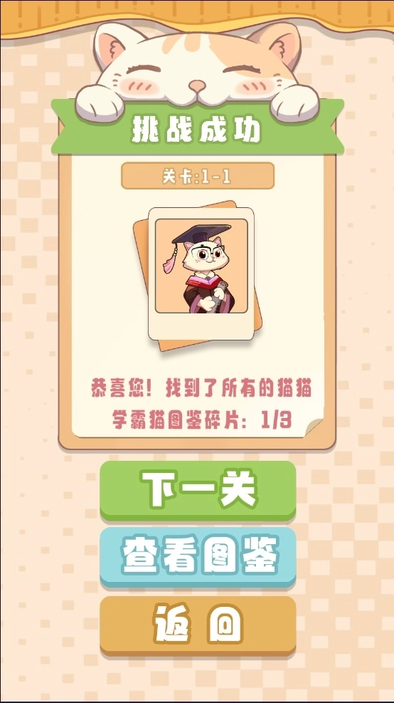 3、找到指定数量的猫咪,挑战成功。