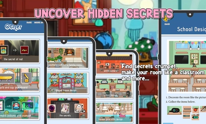 借助这个模组,你能获取装饰卧室、浴室、厨房等各类房间的灵感——比如把房间布置成教室风格,或是设计成带有游泳池的空间;同时还能得到寻找隐藏物品的清晰指引。快去集齐所有稀有和隐藏物品,把房间装点成漂亮的卧室、浴室和厨房吧。