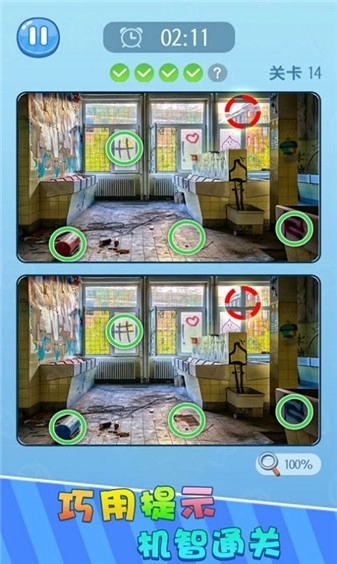 2、随着关卡推进,难度会逐渐提升,差异之处也愈发难以发现,玩家可借助道具的巧妙运用来顺利通关;