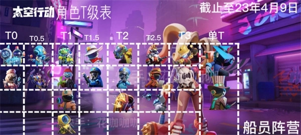在太空行动里,不同角色的等级强度存在差异,下面通过图片来展示T0、T0.5、T1、T1.5、T2、T2.5、T3以及单T的具体排名情况。
