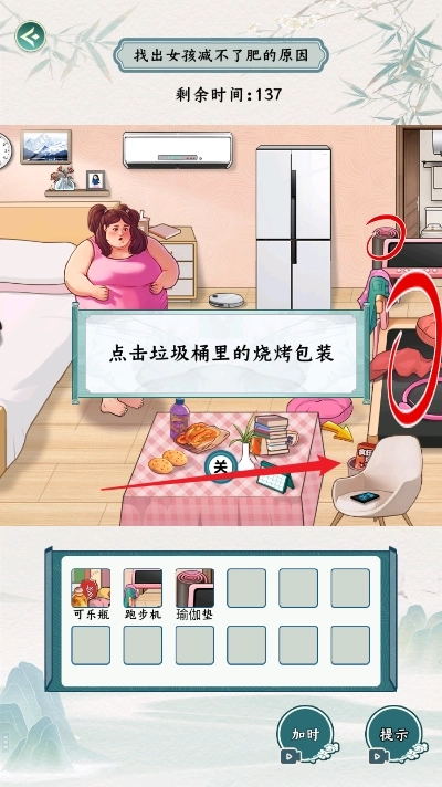 4、点击垃圾桶,然后继续通过无限提示来通关