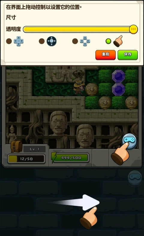进入游戏后,通过上下左右滑动屏幕,就能操控探险家借助藤条完成上下左右方向的移动。