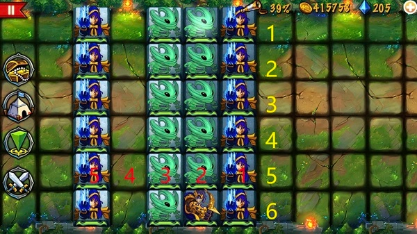 小技巧1:用电法流派闯关时,若发现距离自己两格远的位置有一排墙,墙后藏着电系法师,可先将第一排法师按162534的顺序交换位置,再继续前进。这样做能避免攻击误打墙体,防止墙后的法师被放出团灭我方,之后就能顺利前进消灭那些法师了。