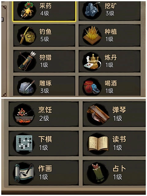 游戏里现在总共有14种手艺,具体都列在下面的图里了。每种手艺包含的生活技能,最高等级都是100级。要练到满级得花不少时间,所以玩家们别太着急,一步一步来才是正确的选择。大家可以按照自己的喜好和当下的心情,去挑选不同的模式或者挑战来玩。这样做能让游戏更耐玩,也能让玩家获得更棒的武林体验。