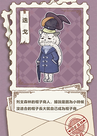 列支森林有位帽子商人,传闻他会从事这一行当,主要是因为小时候没能拥有一顶合心意的帽子。